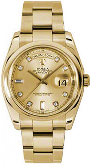 Rolex Day-Date 36 Champagne Diamond Dial Orologio d'oro 118208